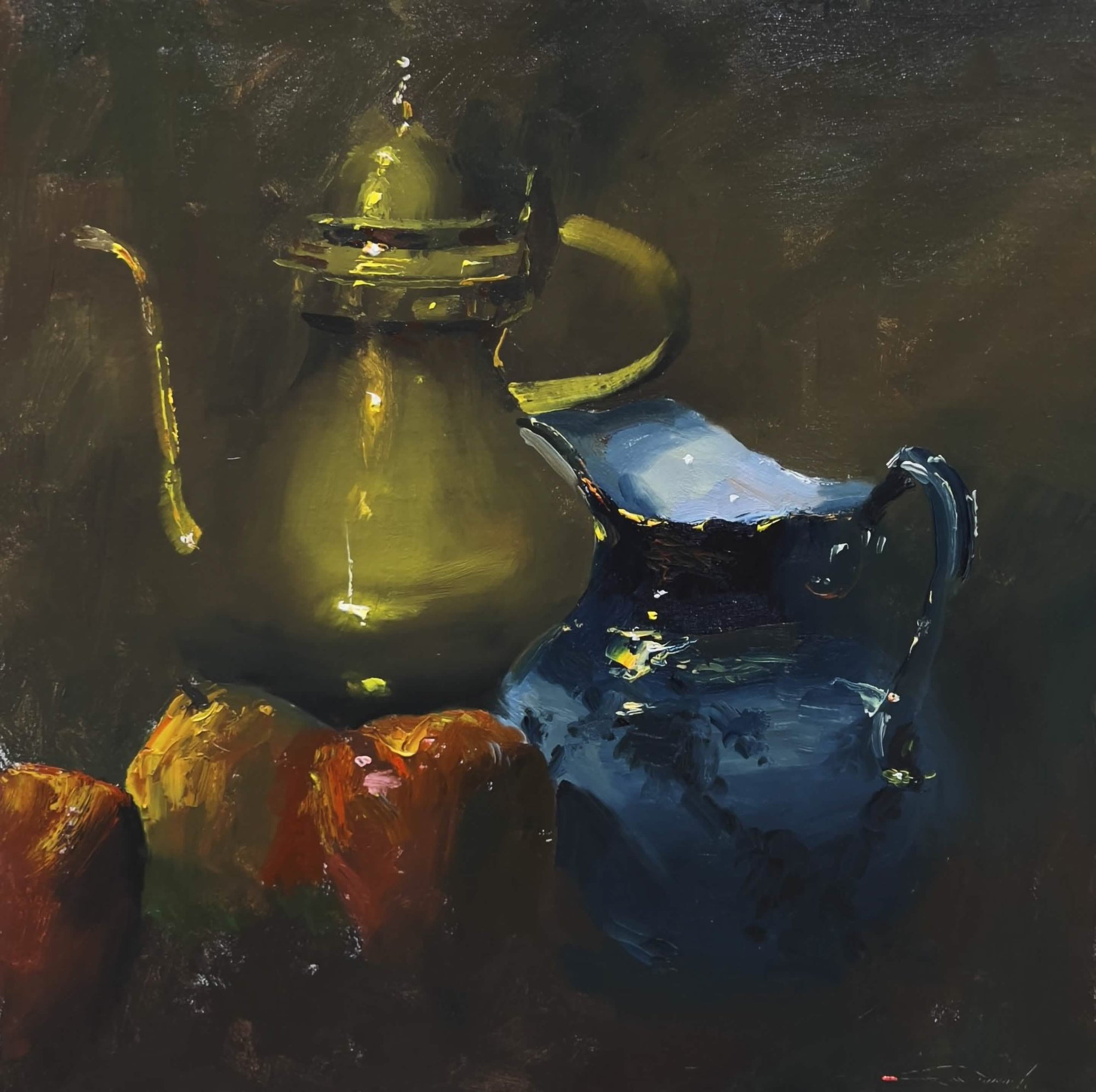 Follow along with C.W. as he paints Brass & Flow Blue with Fruit from start to finish — a dramatic dark still life where ordinary kitchen objects transform into a captivating vision through masterful value control and suggestive brushwork